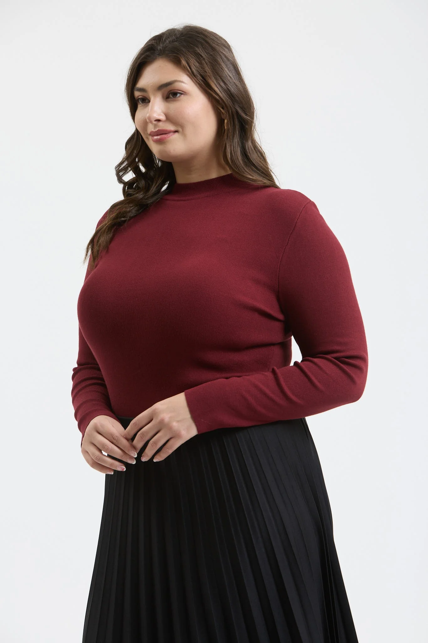 Mock Neck Long Sleeve Lightweight Sweater (Plus Size - Oxblood)