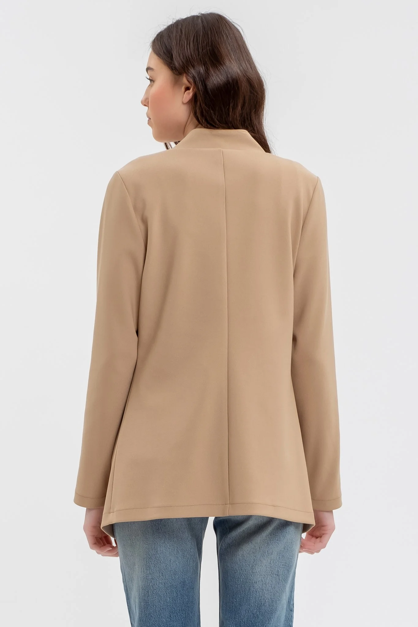 Notch Collar Long Line Blazer (Khaki)